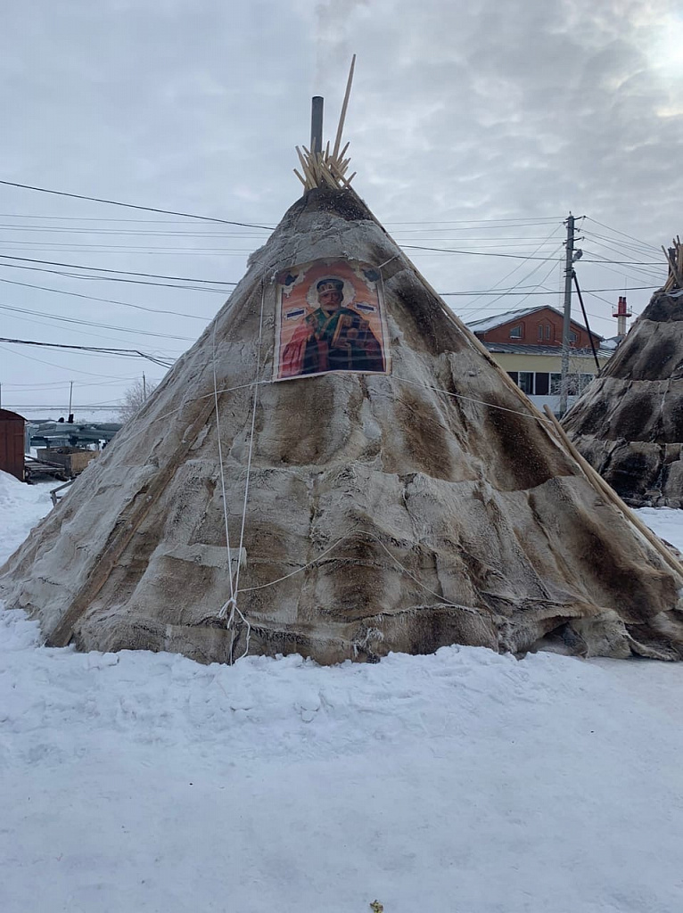 Вместе с настоятелем поселкового храма иереем Иоанном Шишлянниковым по традиции установили чум-часовню. Приехавшие на праздник могли зайти, помолиться за своих родных и близких, поставить свечи и побеседовать со