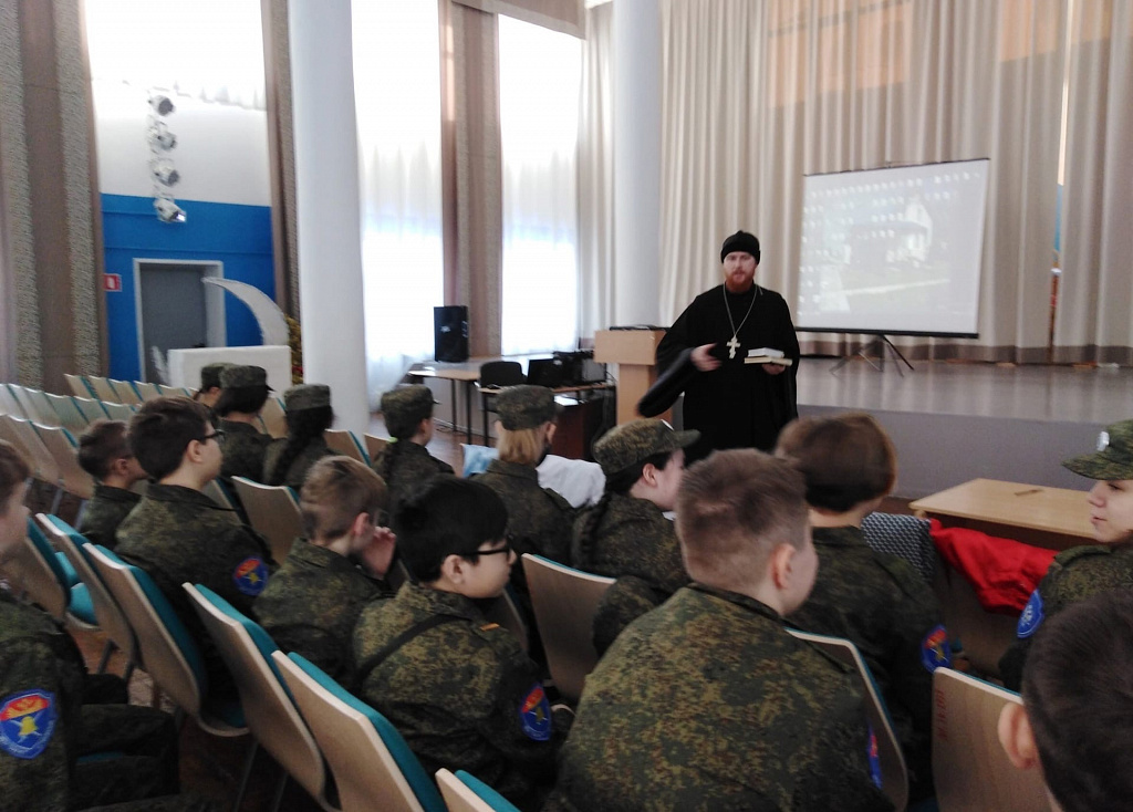 Ученики казачьего класса седьмой губкинской школы познакомились с историей книгопечатания и попробовали свои силы в чтении церковно-славянского языка.На минувшей неделе, в рамках мероприятий, посвященных Дню православной книги, клирик храма святителя Николая Мирликийского иерей Владислав Подоляк провел урок, посвященный этому празднику. Ученики казачьего класса седьмой губкинской школы познакомились с историей книгопечатания и попробовали свои силы в чтении церковно-славянского языка.