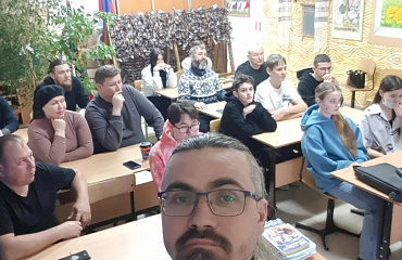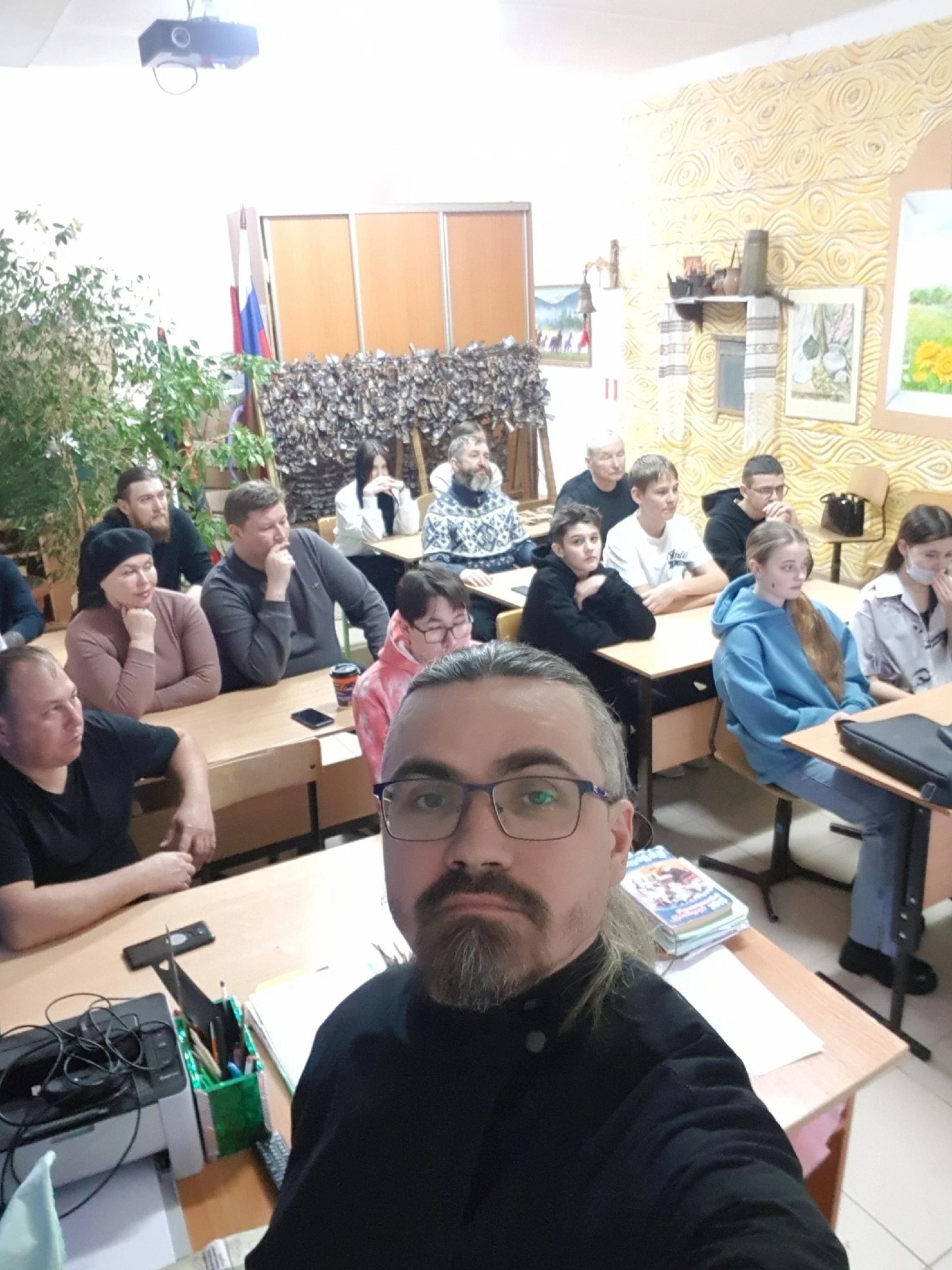 В помещении дома причта при Благовещенском храме района Коротчаево состоялась встреча с кадетами "Ермак" и казаками ХКО НГКО. Темой стала православная книга, история и традиции, с ней связанные.
