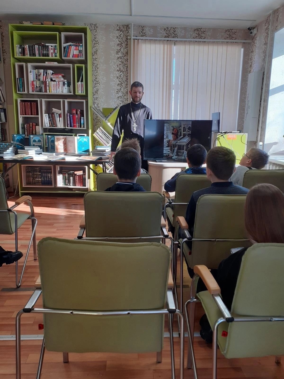 18 марта в Центральной районной библиотеке села Мужи иерей Александр Родин провёл встречу со школьниками, посвящённую Дню православной книги. Дети узнали об истории праздника, о первых печатных изданиях на Руси и о людях, благодаря которым появились первые печатные книги – первопечатниках. На специально организованной выставке ребята смогли познакомиться с современными православными изданиями.