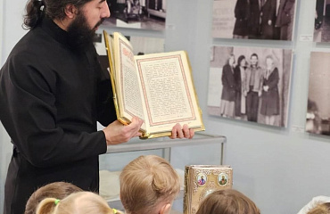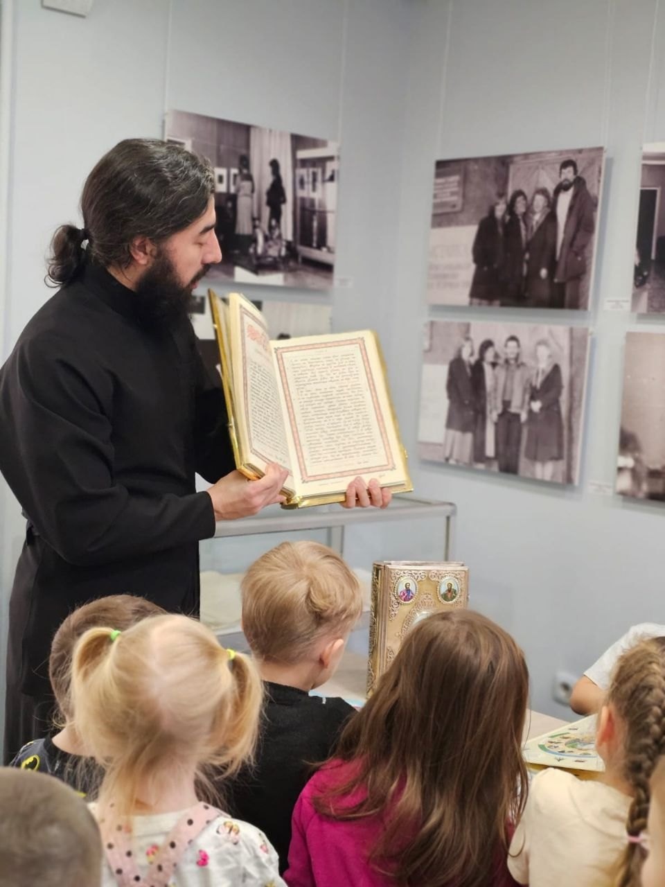 Сегодня в Новоуренгойском городском музее изобразительных искусств состоялось мероприятие посвящённое Дню православной книги. Диакон Виталий Ульянов рассказал воспитанникам детского сада о самой главной книге - Библии, её значимости в жизни человека. Также детям были представлены современные книги православных авторов.